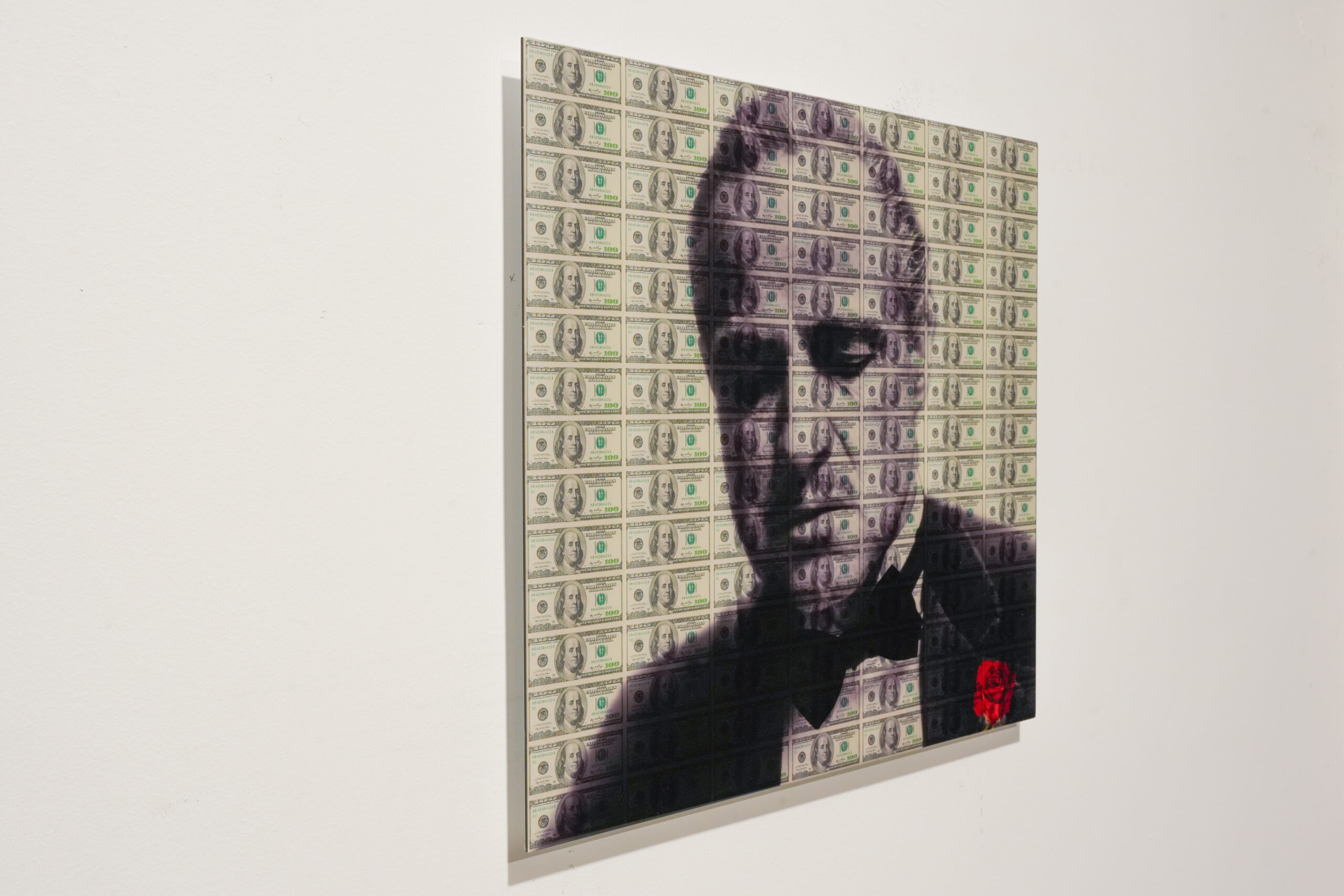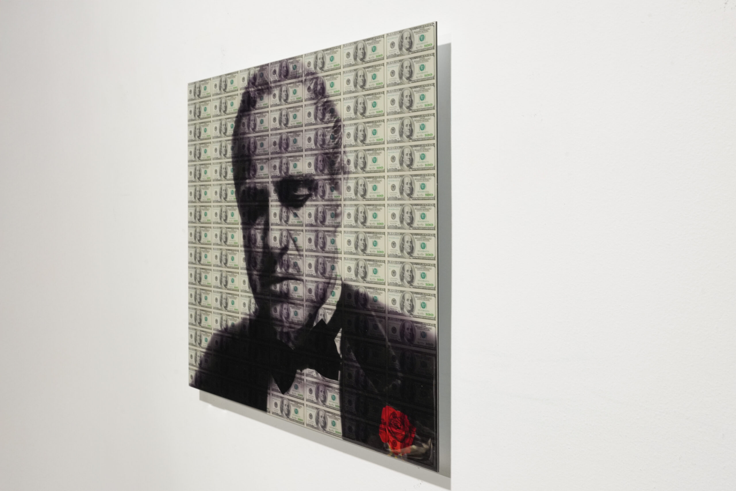 Executed with refined detail, layered textures, and powerful contrasts, the work captures both the legacy of the film and the cultural impact of its legendary protagonist. The fusion of money iconography and cinematic history results in a piece that is both provocative and visually compelling.